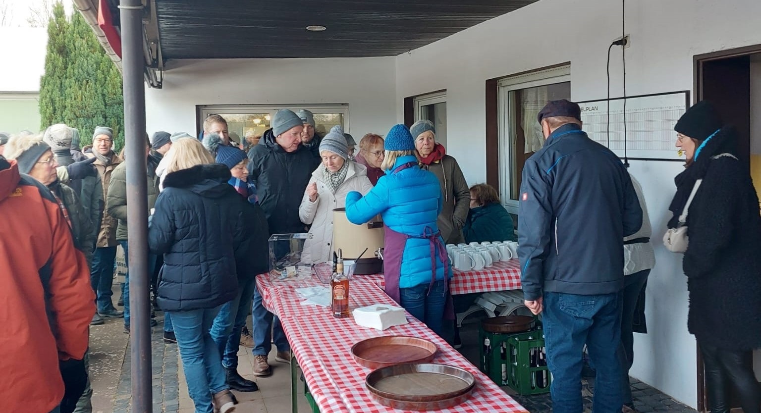 Nachstehend unsere Bilder-Gallerie. So funktioniert diese Foto-Schau: Nach Klick auf einem Foto öffnet sich ein neues Fenster mit dem Foto sowie einer Bildunterschrift und einer Anzeige (Bild X von Anzahl X), gleichzeitig dunkelt sich die komplette Webseite im Hintergrund ab.Neujahrsempfang der Vereine beim TV Stolzenau 150 Personen, so viel wie noch nie, hatten sich zu dem Neujahrsempfang der Vereine: VfB Stolzenau (Verein für Breitensport) , TV Stolzenau (Tennisverein) und Förderverein Freibad Stolzenau angemeldet. „Der Boden gefroren, der Himmel bedeckt es bleib aber trocken so machen sich über 100 Erwachsene und Kinder nach der Begrüßung des Vorbereitungsteams des TV Stolzenau auf den 1- stündigen Wanderweg. “ In diesem Jahr war der Tennisverein Stolzenau Ausrichter des Neujahrsempfanges der Vereine. Am Tennishaus angekommen war die Schlange am Glühwein- und Punschstand lang. Wilfried Falldorf begrüßte alle Gäste, gab eine Rückblick auf das vergangene Jahr, einen Ausblick auf 2024 und einen kurzen Hinweis auf das anstehende Jubiläum. Elisabeth Wiegmann berichtete von den Planungen für 2024 und von den zur Zeit stockenden Sanierungsmaßnahmen. Fest steht, dass es in 2024 eine (wenn auch kürzere) Badesaison gibt. Sie rief zu Pfandbonspenden zugunsten der Edelstahl-Breitrutsche beim Rewemarkt auf. Marion Hahn berichtet von der aktiven Jugendarbeit und einer wiedererstarkten Fußballsparte beim VfB und rief dazu auf, die Spiele regelmäßig zu besuchen. Sie ehrte für das Projekt Flutlichtanlage Kasten Hahn, Peter Herrmann, Bernd Mentze und Rudi Turzinski für deren großen ehrenamtlichen Einsatz. Als Ehrengäste waren in diesem Jahr Samtgemeindebürgermeister Jens Beckmeyer und Bürgermeister Heinrich Kruse anwesend, die von aktuellen Projekten in Stolzenau und der Samtgemeinde Mittelweser berichten. Beide wiesen auf eine Eröffnung des Freibades Stolzenau in diesem Jahr hin. Das kompetente Grillteam versorgte die Hungrigen perfekt. Nun war die Zeit für Gespräche