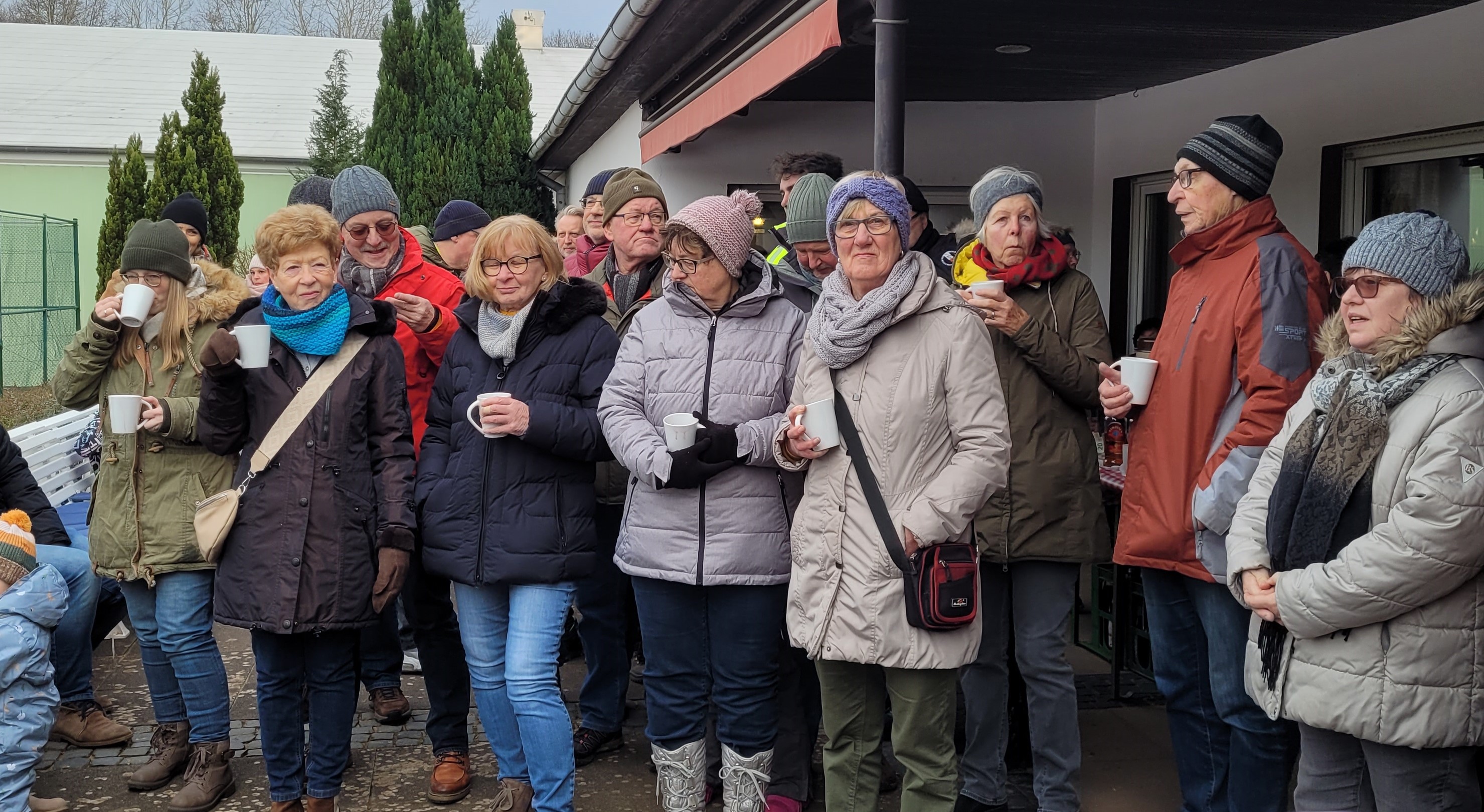 Nachstehend unsere Bilder-Gallerie. So funktioniert diese Foto-Schau: Nach Klick auf einem Foto öffnet sich ein neues Fenster mit dem Foto sowie einer Bildunterschrift und einer Anzeige (Bild X von Anzahl X), gleichzeitig dunkelt sich die komplette Webseite im Hintergrund ab.Neujahrsempfang der Vereine beim TV Stolzenau 150 Personen, so viel wie noch nie, hatten sich zu dem Neujahrsempfang der Vereine: VfB Stolzenau (Verein für Breitensport) , TV Stolzenau (Tennisverein) und Förderverein Freibad Stolzenau angemeldet. „Der Boden gefroren, der Himmel bedeckt es bleib aber trocken so machen sich über 100 Erwachsene und Kinder nach der Begrüßung des Vorbereitungsteams des TV Stolzenau auf den 1- stündigen Wanderweg. “ In diesem Jahr war der Tennisverein Stolzenau Ausrichter des Neujahrsempfanges der Vereine. Am Tennishaus angekommen war die Schlange am Glühwein- und Punschstand lang. Wilfried Falldorf begrüßte alle Gäste, gab eine Rückblick auf das vergangene Jahr, einen Ausblick auf 2024 und einen kurzen Hinweis auf das anstehende Jubiläum. Elisabeth Wiegmann berichtete von den Planungen für 2024 und von den zur Zeit stockenden Sanierungsmaßnahmen. Fest steht, dass es in 2024 eine (wenn auch kürzere) Badesaison gibt. Sie rief zu Pfandbonspenden zugunsten der Edelstahl-Breitrutsche beim Rewemarkt auf. Marion Hahn berichtet von der aktiven Jugendarbeit und einer wiedererstarkten Fußballsparte beim VfB und rief dazu auf, die Spiele regelmäßig zu besuchen. Sie ehrte für das Projekt Flutlichtanlage Kasten Hahn, Peter Herrmann, Bernd Mentze und Rudi Turzinski für deren großen ehrenamtlichen Einsatz. Als Ehrengäste waren in diesem Jahr Samtgemeindebürgermeister Jens Beckmeyer und Bürgermeister Heinrich Kruse anwesend, die von aktuellen Projekten in Stolzenau und der Samtgemeinde Mittelweser berichten. Beide wiesen auf eine Eröffnung des Freibades Stolzenau in diesem Jahr hin. Das kompetente Grillteam versorgte die Hungrigen perfekt. Nun war die Zeit für Gespräche